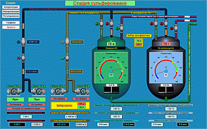 Операторский уровень АСУТП Суперпластификатора, созданный в SCADA TRACE MODE 6, включает в себя 2 Автоматизированных Рабочих Места (АРМ) оператора-технолога и 4 Удаленных рабочих мест для руководящего состава, технологов и лаборатории качества ОАО Полипласт-Новомосковск. АРМ операторов разработаны на базе TRACE MODE МРВ+. На всех рабочих местах создан удобный фотореалистичный операторский интерфейс в графическом редакторе Интегрированной среды разработки TRACE MODE 6. Для каждой из стадий техпроцесса производства Суперпластификатора, а также для каждого из регуляторов был создан отдельный экран-мнемосхема. Кроме того в проекте создан общий экран графиков, всплывающие экраны тревог и настроек регуляторов. На основном АРМ с тремя мониторами постоянно отображаются мнемосхемы стадии сульфирования, конденсации и нейтрализации, соответственно, по одной на каждом из мониторов. Второй оператор может сам выбирать какой из экранов вывести на дисплей. Удаленные рабочие места АСУТП производства Суперпластификатора представляют собой удаленные графические консоли на базе программного модуля TRACE MODE 6 NetLink Light. С этих рабочих мест осуществляется мониторинг параметров и событий технологического процесса. Такие условия используются лабораторией, службой технологов и руководствующим составом - начальником производства и генеральным директором ОАО Полипласт-Новомосковск.