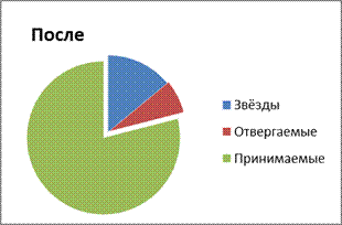 Таким образом можно сделать вывод что отвергаемых стало меньше а звёзд стало больше, в группе звёзы 23%, отвергаемые 5, принимаемые 72 В группе мальчиков и девочек общеобразовательной школы преобладает третий уровень развития мотивации, что говорит о их направленности на внеучебную деятельность.