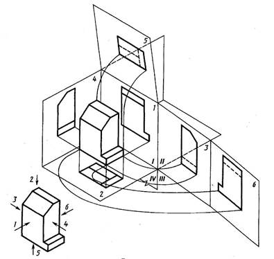 Слайд 1. За основні площини проекцій приймають шість граней куба; грані (площини проекцій) суміщають з площиною, як показано на слайді 2. Грань 5 допускається розташовувати поряд з гранню 4.