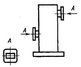 Перерізи. Перерізи, що не входять до складу розрізу, розділяють на винесені (слайд 13, а) і накладені (слайд 13, б). Винесені перерізи є переважними, і їх допускається розташовувати в розриві між частинами одного і того ж вигляду (рис. 13, в). Контур винесеного перерізу, а також перерізу, що входить до складу розрізу, зображають суцільними основними лініями, а контур накладеного перерізу (слайд 13, б) - суцільними тонкими лініями, причому контур зображення в місці розташування накладеного перерізу не переривають. Для несиметричних перерізів лінію перерізу позначають розімкненою лінією з вказівкою стрілками напряму погляду. При цьому для винесеного перерізу її позначають однаковими прописними буквами російського алфавіту, а зображення перерізу надписують (сладй 13, а). Для таких же перерізів, накладених (слайд 13, б) або розташованих в розриві (сладй 13, в), лінію перерізу проводять із стрілками, але буквами не позначають.