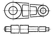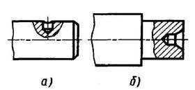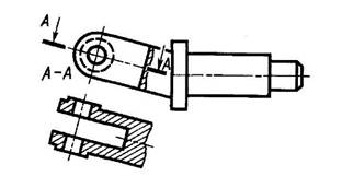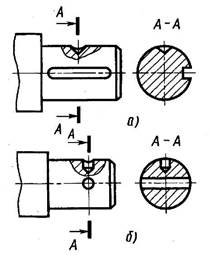 б) для показу отвору в маточинах зубчатих коліс, шківів і т.п., а також для пазів шпон замість повного зображення деталі давати лише контур отвору або паза (слайд 22, а, б);