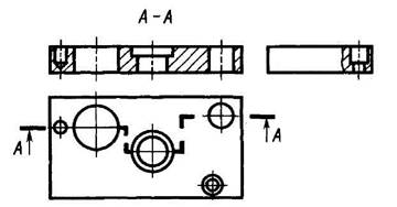 Для декількох однакових перерізів, що відносяться до одного предмету, лінію перерізу позначають однією буквою і викреслюють один переріз, наприклад переріз А—А на слайді 15.