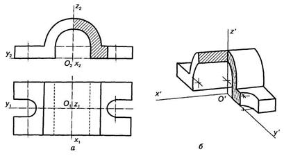Питання, що виносяться на самостійне опрацювання: 1. Умовності та спрощення при побудові зображень. Питання для самоперевірки: 1. Що називають виглядом? Які є основні вигляди? 2. Як розміщують та позначають основні вигляди? 3. Які вигляди називають додатковими? Як їх розміщують та позначають? 4. Чим відрізняються місцеві вигляди від додаткових? 5. У чому відмінність між розрізом і перерізом? 6. Як поділяють розрізи залежно від кількості січних площин? 7. Як виконують місцевий розріз? 8. У яких випадках прості розрізи не позначаються? 9. Як оформити поєднання частини вигляду з частиною розрізу? 10. Чим відрізняється накладений переріз від винесеного? Коли періз не позначається? 11. Як виконують кілька однакових перерізів, що належать одному предмету? 12. Що називають виносним елементом і як його виконують? 13. Яка умовність дозволяється при зображенні симетричних зображень? 14. Як зображують кілька однакових рівномірно розміщених елементів? 15. Як показують у розрізі кріпильні деталі? 16. Як зображуються у розрізі тонкі стінки та ребра жорсткості? Лекція 3. Тема. АКСОНОМЕТРИЧНІ ПРОЕКЦІЇ, ТЕХНІЧНИЙ РИСУНОК План 1. Основні поняття і визначення. 2. Прямокутні ізометрія і диметрія 3. Косокутна фронтальна диметрія
