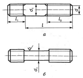 Шпильки випускають класів тонності А і В діаметром різьби 2...48 мм і завдовжки 10...300 мм. На слайді 3, а, б, подано шпильки, які мають довжину кінця, що загвинчується, l1 довжину шпильки l та довжину гайкового кінця l 0. Приклад позначення: Шпилька М16 х 1, 5 х 100, де 16 – номінальний діаметр, 1, 5 – крок, 100 – довжина.