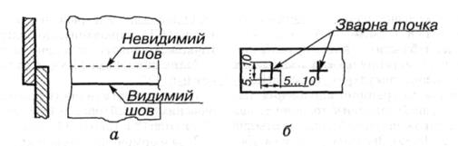 Слайд 15 Зварні шви на кресленнях зображують умовно: а) незалежно від способу зварювання видимі шви зображують суцільною товстою основною лінією, а невидимі – штриховою (слайд 16, а); б) видиму одиничну зварну точку умовно показують знаком +, виконаним суцільною товстою основною лінією, невидимі одиничні точки не зображують (слайд 16, б).