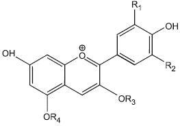 Примечание: Конкретный вид антоцианидина зависит от состава радикалов R Таблица 2.2.1 Виды антоцианидинов в зависимости от состава радикалов