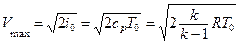 Это позволяет ввести в рассмотрение максимальную скорость движения газа. При заданном значении энтальпии (температуры) торможения максимальная скорость определяется равенством: