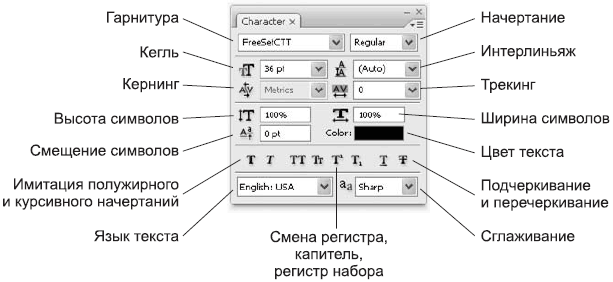 Програми фірми Adobe поділяють не тільки принципи налаштування тексту, але і термінологію, так і панелі для установки тексту виглядають приблизно однаково. Тому якщо ви знайомі з роботою з текстом в Adobe Illustrator або Adobe InDesign, то більшість матеріалу, викладеного в цій главі, вам вже відомо.