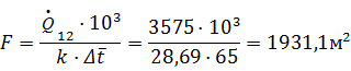Запишем формулу для расчета оценочной площади теплообменного апарата: