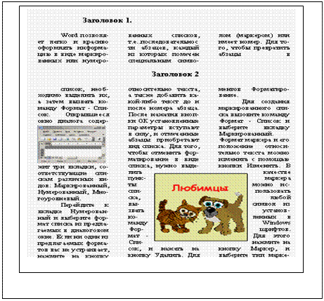 25. Пронумеровать страницы ( Вставка®Номера страниц, просмотрите все параметры команды) 26. К слову Сноска в тексте установите примечание (" это пояснения к тексту"). 27. Просмотреть документ в следующих режимах: 1) Разметки страницы. 2)Полноэкранный 3) Обычный. Для этого можно использовать либо кнопки в левом нижнем углу окна редактирования текста, либо соответствующий пункт меню «Вид». Определить их назначение Удалите примечание Проверить орфографию, установить автоматический перенос слов. (Пункт меню Сервис) 30. Создать документ в соответствии с образцом (рисунок 1) Рисунок 1 – Образец документа Вставить в документ колонтитул, ввести в область колонтитула свои данные: Ф.И.О.; номер группы; дату; Создайте новый документ, содержащий текст в виде параллельных столбцов в соответствии с образцом (рисунок 2), используя кнопку выбора типа табуляции. Для ввода текста в параллельные столбцы (рисунок 2) необходимо установить на линейке позиции табуляции: - для столбца содержащего «Продукты» тип табуляции «по левому краю»; - для столбцов содержащих «100 гр.» и «15 гр» тип табуляции «по центру»; - для столбца содержащего «25 гр» тип табуляции «по правому краю».