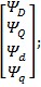 де LD Lq, Ld, Lq — індуктивності відповідних обмоток; Мd і Мq, — взаємні індуктивності обмоток статора і ротора по осям d і q; Ψ D, Ψ Q, Ψ d, Ψ q і iD, iQ, id, iq — миттєві значення потокощеплень і струмів обмоток машини. Систему рівнянь (14) можна записати в матричному виді: Ψ =Li где Ψ, i — чотирьохвимірні вектори потокозчеплення і струму; L — матриця індуктивностей узагальненої машини: