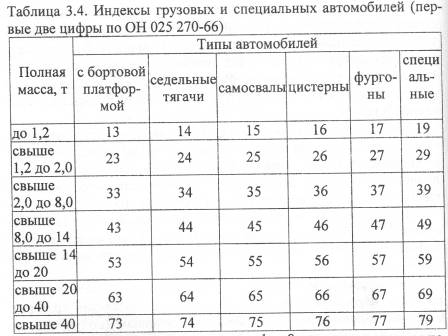 Таблица 3.5. Индексы прицепов и полуприцепов (первые две цифры по ОН 025270-66)