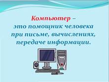 Рис. 4 Задание: Прочитайте текст (рис. 4) (Чтение текста с экрана) Вопрос. Понятен ли смысл текста? (Да) - Давайте представим себе, что каждый из вас работает, как компьютер: с клавиатуры вводится символ, который попадает в память. Но компьютеру смысл текста недоступен, он работает с отдельными символами, а слова определяет по пробелам справа и слева. Посмотрите внимательно на текст. Он состоит не только из букв. Вопрос. Что ещё есть в тексте? (Знаки препинания.) - Таким образом, текст в памяти компьютера представляет собой цепочку не только букв, но и знаков препинания. (слайд 4), (рис. 5)