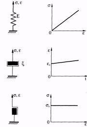 В'язкі властивості матеріалів моделює елемент Ньютона (рис.5, б), який являє собою демпфер-циліндр з отворами, який занурений у в'язку рідину. Швидкість деформації в цьому випадку пропорційна діючому напруженню