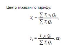 ЗАДАЧА №2 Определить место расположение склада методом центра тяжести грузопотоков Дано: координаты Х, У, грузооборот, средний тариф на перевозку 4 варианта выбора Если вдруг будет по тарифу (т.е. нужно будет расположить склад взависимости от того, какие тарифы на перевозку единицы продукции), то следующая формула: