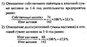 1. Отношение собственного капитала к итоговой сумме активов. 2. Отношение долга (итоговой суммы пассивов) к итоговой сумме активов. 3. Покрытие процентов. Два первых коэффициента рассчитываются в процентах, третий – в кратах (разах). ПРИМЕР 5 РАСЧЕТЫ КОЭФФИЦИЕНТОВ СТАБИЛЬНОСТИ за 1-й год деятельности предприятия