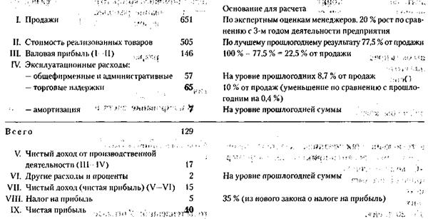 Планирование баланса предприятия Сложность планирования изменений в собственности, в отличие от планирования прибыли, в том, что тут нет такого начального опорного числа, как сумма продаж. Поэтому каждая статья текущего баланса предприятия рассчитывается самостоятельно и лишь после этого производится общая балансировка. Вот примерная последовательность такой работы. Первый шаг. Определяется основная балансовая стоимость плана баланса. Это могут быть наличные деньги, платежи по банковским кредитам и др. Второй шаг. Заполняются статьи, которые, по всей вероятности, не претерпят изменений. Например, статья «Основной капитал», если не предполагаются реализация и приобретение основных фондов. Третий шаг. Заполняются статьи, которые меняются и будут иметь уже известные расчетные значения. Например, размер предполагаемой прибыли из плана счета прибылей и убытков позволит рассчитать нераспределенную прибыль. Этой же цели будет способствовать и знание планов распределения прибыли, плана выплаты дивидендов и т. д. Четвертый шаг. Ряд статей планируемого баланса может быть рассчитан, исходя из знания финансовых коэффициентов за прошлые годы. Например, если по анализу финансовых коэффициентов на 4-й год деятельности предприятия срок выплат по счетам принять 30 дней, а продажу оценить в 650 у. д. ед., то выплаты по счетам на 4-й год составят: