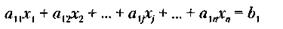 в данном примере означает следующее: a11 – количество единиц ресурсов вида 1 на первом предприятии; а12 – количество единиц ресурсов вида 1 на втором предприятии и т. п.; b1 – общий ресурс ресурсов вида 1 (для всех предприятий); x1, x2 и.т. д. – искомое количество предприятий типов 1, 2 и т. д. Вторая строка упомянутой системы уравнений содержит аналогичные величины для ресурсов вида 2 и т. д. Функция цели соответствует формуле (16.11). Требуется обратить в минимум величину