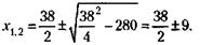 Решая полученную систему из двух уравнений с двумя неизвестными, придем к квадратному уравнению: