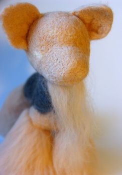 7. Теперь можно обвалять рыжей шерстью, оставляя щечки низ мордочки, ротик белыми. Не забываем поправлять углубления для глазок и другие выражения мордочки.