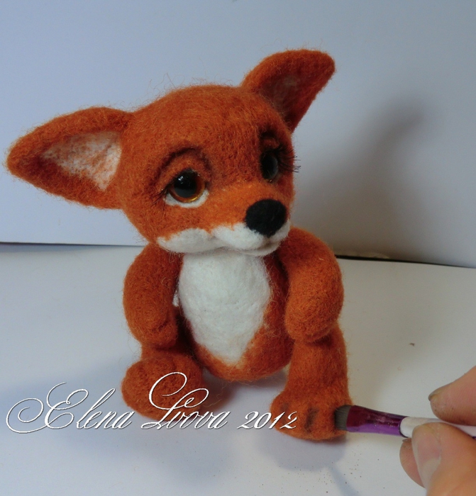 Видите, как он смотрит, как будто говорит: что ты делаешь, ведь мне щекотно!!! 25. Можно оставить такого малыша Лисенка, но тогда нужно хорошенько «отшлифовать» тонкой иглой, чтобы не было видно торчащих ворсинок и Лисенок стал «гладкий».