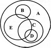 Понятия А и Е – подчинение (субординация). Понятия D и Е и С и Е- пересечение (перекрещивание). Понятия С и D – подчинение (субординация). Понятия В и С – соподчинение (координация).