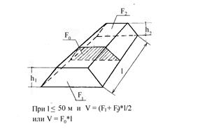 V = 0, 5 (F1 + F2 )l, (4.3) где F1 и F2 – площадь поперечного сечения одного и второго торца призматоида; L – длина призматоида.