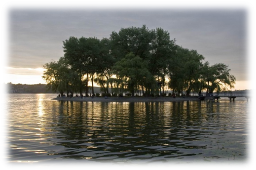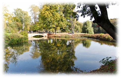 · Посередині озера з правого боку видніється острів. Це – острів закоханих, романтичне місце, про яке мріють закохані пари. Сам острів створили під час відновлення ставу після Другої Світової війни. Дістатись до нього можна спеціальним містком, або на човні. Вхід туди безкоштовний, і кожен охочий може там посидіти чи сам, чи з коханою людиною на численних лавочках.