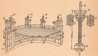 Рис.28. Скользящая опалубка на винтовых домкратах: а – опалубка; б – домкрат.
