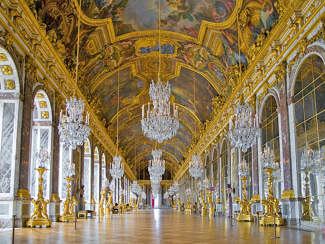 Верса́ ль — дворцово-парковый ансамбль во Франции (фр. Parc et châ teau de Versailles), бывшая резиденция французских королей в городе Версаль, ныне являющемся пригородом Парижа. С мая 1682 года по октябрь 1789 года дворец являлся постоянной резиденцией трех французских королей – Людовика XIV, Людовика XV и Людовика XVI. Дворец представляет собой грандиозное сооружение, общая площадь которого составляет более 63 тысяч квадратных метров. Здание насчитывает 2300 комнат, 1000 из которых сегодня входит в состав музейного комплекса. Дворец впечатляет не только своими размерами, но и пышностью внутреннего убранства, затмившего все ранее существовавшие резиденции королей и высокой знати. Слава Версаля была столь велика, что он стал образцом для строительства многих других архитектурных комплексов и, в том числе, вдохновил русского императора Петра I на постройку дворца в Петергофе. Версальский дворец стал воплощением смелого архитектурного замысла короля Людовика XIV. Однако еще до него места, где впоследствии появился дворец, приглянулись его отцу Людовику XIII. Надо сказать, что в начале 17 века Версаль представлял собой небольшой поселок, где проживало около 500 человек. Кругом расстилались болота и бескрайние поля. В 1623 году неподалеку от деревушки по приказу Людовика XIII был выстроен скромный охотничий замок. В 1636-1638 годах архитектор Филибер Леруа перестроил полюбившуюся королю резиденцию, которая приобрела П-образную форму. Этот воздвигнутый из камня и кирпича миниатюрный дворец с черепичной крышей, современники называли «карточным домиком». Однако в противовес его незамысловатой архитектуре интерьеры были богато оформлены. В 1651 году в Версале впервые побывал Людовик XIV. Поначалу он приезжал туда лишь для того, чтобы провести время со своей любовницей Луизой де Лавальер. Затем в 1660 году король прибыл в Версаль вместе с молодой супругой – испанской инфантой Марией-Терезией. В то время Версаль чаще всего использовался королем для увеселительных мероприятий. Очень скоро стало понятно, что маленький дворец непригоден для размещения многочисленной королевской свиты. Кроме того, решающим импульсом, заставившим Людовика задуматься над подстройкой нового дворца, стало посещение 17 августа 1661 года праздника, устроенного в его честь в замке Во-ле-Виконт, который принадлежал сюринтенданту финансов Никола Фуке. Над созданием этого великолепного архитектурного ансамбля работали самые лучшие мастера того времени – архитектор Луи Лево, художник Шарль Лебрен, скульпторы Франсуа Жирардон и Франсуа Ангье, а устройством парка занимался знаменитый ландшафтный архитектор Андре Ленотр. На строительство и отделку замка Фуке затратил огромные средства. Короля раздражали богатство и гордыня этого ловкого человека, обогатившегося на службе у кардинала Мазарини, хотя формально сюринтендент подчинялся королю. Кроме того, король с негодованием узнал о том, что Фуке безуспешно пытался подкупить его любовницу Луизу де Лавальер. Последней каплей стал памятный торжественный прием в Во-ле-Виконт, во время которого королю, наряду с 3000 приглашенных, были продемонстрированы пышно обставленные апартаменты и парк с великолепными фонтанами, которые ночью осветили огни фейерверков. Две недели спустя король под каким-то предлогом вызвал Фуке в Нант, где тот был арестован. А 