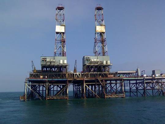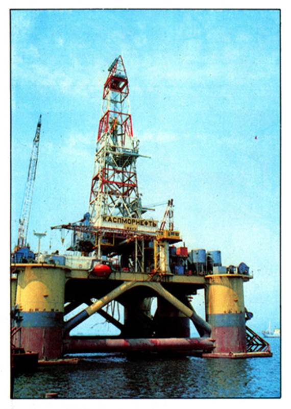 При глубинах воды до 40 м, например, на Каспийском море, широко применяются металлические платформы сквозного типа, с которых производят бурение, а обслуживание вышек и транспортировка добытой нефти обеспечивается по эстакадам, соединяющим буровую с берегом. На Каспии сейчас из 22-х разведанных месторождений нефти эксплуатируются 20, но большинство из них принадлежат не России.