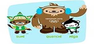 Слева направо: Суми, Куатчи, Мига Талисманами Игр выступили: · Мига (англ. Miga) — вымышленный морской медведь, наполовину косатка, наполовину белый барибал. · Куатчи (англ. Quatchi) — бигфут, происходящий из канадских лесов и мечтающий стать хоккеистом. · Суми (англ. Sumi) — «дух животных». В нём соединены многие представители фауны канадского тихоокеанскогопобережья. Он стал талисманом Паралимпийских игр. · Мукмук (англ. Mukmuk) — ванкуверский сурок, неофициальный талисман Игр. Девизы Девизы Игр были объявлены 25 сентября 2008 года. Ими являются строчки из гимна Канады — «С пылающими сердцами» (англ. With glowing hearts) из английской части песни и «Самых блестящих подвигов» (фр. Des plus brillants exploits) из французской. Эстафета Олимпийского огня 22 октября 2009 года в греческом городе Олимпия был зажжён огонь Зимних Олимпийских игр 2010 года, в соответствии с традицией, с помощью солнечных лучей[4]. Первым факелоносцем стал греческий лыжник Василиас Димитридас, который был одет в лыжный костюм, несмотря на жаркую летнюю погоду. 30 октября 2009 года огонь прибыл в Викторию, столицу Британской Колумбии. Эстафета полностью прошла в пределах Канады. В эстафете олимпийского огня, прошедшей с 30 октября 2009 года по 12 февраля 2010 года, по заявлениям организаторов, приняло участие примерно 12 000 факелоносцев, прошедших дистанцию длиной 45 000 км. Маршрут эстафеты олимпийского огня был проложен по воде (1 000 км), по воздуху (18 тыс. км) и по земле (26 тыс. км) и стал самым протяжённым в истории Олимпийских игр. Эстафета завершилась торжественным зажжением огня на стадионе Би-Си Плэйс.