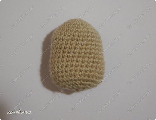 1р - 6сбн, в кольцо 2р - пр*6 (12) 3р - (1сбн, пр)*6 (18) 4р - (2сбн, пр)*6 (24) 5р - 24сбн 6р - (3сбн, пр)*6 (30) 7-8р - 30сбн 9р - (13сбн, уб)*2 (28) 10-11р - 28сбн 12р - (13сбн, пр)*2 (30) 13р - 30сбн 14р - (14сбн, пр)*2 (32) 15р - 32сбн 16р - (15сбн, пр)*2 (34) 17р - 34сбн 18р - (2сбн, уб)*8, 2сбн (26) 19р - (1сбн, уб)*8, уб (17) Набить 20р - уб*8, 1сбн (9) 21р - уб*4 Оставить нить для пришивания.