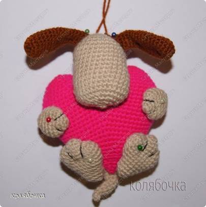 Предлагаю к празднику связать сердечного пёсика.У него нет туловища, его роль играет сердце.Игрушка моя авторская, по этому пёсику проведены онлайны на Бэбиблоге, Форуме почитателей амигуруми и на Блоггере.Здесь, на Лиру и на ЯМ просто в виде мк выложено описание, поэтому просьба не тянуть описание на другие ресурсы, меня легко можно найти по имени-фамилии или нику.С игрушкой можете делать что хотите, можно дарить, можно продавать, не забывайте благодарить или указывать автора игрушки, вам не сложно, мне приятно.Всем желающим лёгких петелек!