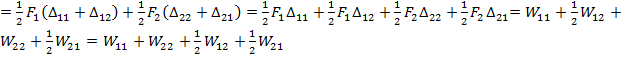 ∆ 11 – действительное перемещение по направлению I силы от действия этой же силы; ∆ 22 – то же для II направления, ∆ 12 – возможное перемещение по направлению I силы, вызванное действием второй силы, ∆ 21 – то же для II направления. ∆ iΣ – перемещение по направлению I силы от действия двух сил одновременно, ∆ 2Σ – то же для II направления. Вычислим суммарную работу для обеих последовательностей нагружения: WΣ I= W11, W22, W12 – действительная работа; WΣ II= Согласно принципу произвольной очередности нарушения: WΣ I = WΣ II или W11+W22+W12 = W11+W22+