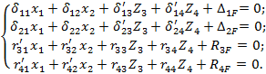 Первый этап рамы выгодно решать методом перемещений, а второй этап рамы – методом сил. Покажем эквивалентную систему смешанного метода где введены две виртуальные заделки в жесткие узлы и удалены две реальные связи в шарнирном узле. Таким образом при смешанном методе решения nст-k< Система канонических уравнений смешанного метода запишется для данной рамы в следующем виде:
