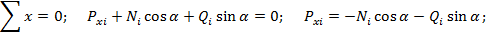 Эти внешние нагрузки создают внутренние усилия. Составим уравнения равновесия для узла i.
