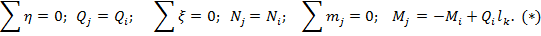 Рассматривая условия равновесия узла j, аналогично узлу i, получаем с учетом равенств (*).
