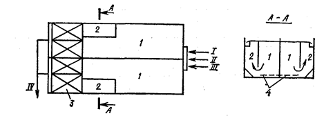 Аэробный стабилизатор: 1 – зона аэрации; 2 – отстойная часть; 3 – уплотнитель; 4 – система аэрации;
