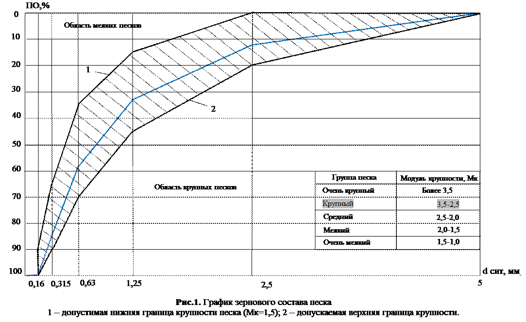 Вывод: исследуемый песок высокого качества для производства бетонов