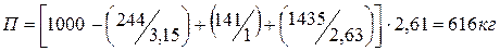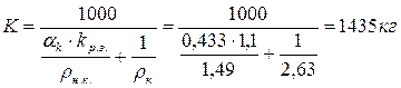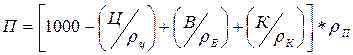 Определив расход воды и взяв из формул значения Ц/В, или В/Ц, вычисляют расход цемента по формулам Ц=В× Ц/В=141· 1, 73=244 кг или Ц = В: В/Ц. Если расход цемента на 1 м3 бетона окажется меньше минимально допустимого по нормам (табл. 5 [1]), то следует увеличить его до требуемой нормы, сохранив прежнее Ц/В. Расход воды при этом пересчитывают, исходя из увеличенного расхода цемента. Полученный нами расход цемента на 1 м3 бетона Ц=244 кг больше Цмин.доп=220 кг по нормам таблицы 5[1]. 7. Расчёт количества заполнителей. Расход заполнителей определяют, опираясь на следующие предположения: а) объем плотно уложенного бетона, принимаемый в расчете равным 1 м3 или 1000 дм3, без учета воздушных пустот слагается из объема зерен крупного и мелкого заполнителей и объема цементного теста, заполняющего пустоты между зернами заполнителей. Это положение выражается уравнением абсолютных объемов: Ц/ρ ц + В/ρ в + П/ρ п + К/ρ к = 1000; б) пустоты между зернами крупного заполнителя должны быть заполнены цементно-песчанным раствором с некоторой раздвижкой зерен. Это положение записывается уравнением: Ц/ρ ц + П/ρ п + В/ρ в = К· α к· kр.з./ρ н.к. где Ц, В, П, К – расходы цемента, воды, песка и крупного заполнителя, кг; ρ ц, ρ в, ρ п, ρ к - плотности этих материалов, кг/дм3; ρ н.к. – насыпная плотность крупного заполнителя, кг/дм3; α к – пустотность крупного заполнителя в насыпном состоянии в долях единицы объема, вычисленная по формуле: α к = 1 - ρ н.к./ρ к = 1 – 1, 49 /2, 63= 0, 433 kр.з. – безразмерный коэффициент раздвижки зерен крупного заполнителя цементно-песчанным раствором. 7.1. Расчёт количества крупного заполнителя (щебня). Решая совместно уравнения приведённые в пункте 7, получим формулу для определения расхода крупного заполнителя: