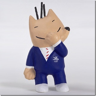 В качестве основного атрибута талисман имел яркий красный пояс с изображением Олимпийской эмблемы, похожий на ленту, на которой вручается медаль.