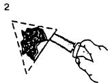 Рисунок 47 - Последовательность операций по устранению пузырей на стыках ГКЛ 6.9.13 При замене крепежа (рисунок 48), надавливая на гипсокартонный лист, вворачивают один винт на расстоянии 50 мм от выпадающего винта, который вытаскивают и удаляют отслоившуюся шпаклевку (рисунок 48, 1), а затем наносят шпаклевку (рисунок 48, 2) и выполняют операции в соответствии с 6.9.4.