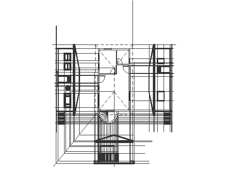 1. Установите текущим слой «Вспомогательные линии». 2. Выполните зеркальное отображение 10 спиц балкона слева направо 3. Проведите вспомогательные линии, перпендикулярные к уровню «Земли», необходимые для построения фасада справа. 4. Установите текущим слой «Фасад». Используя соответствующие точки пересечений, постройте в слое «Фасад» фасада справа. 5. Для контроля отключите слой вспомогательных линий.