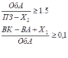 Х2-Х1£ aОбА, Х1£ bВА, Х2< gПЗ, (2.21) де a, b, g – відповідно гранично-допустимі для збереження статусу діяльності підприємства розміри зменшення оборотних активів (наприклад, до 20%), необоротних активів (наприклад, до 10%), поточних зобов’язань (наприклад, до 50%).