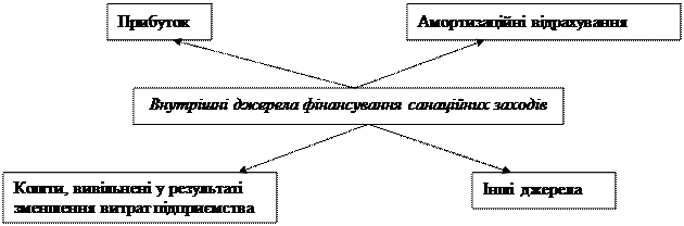 Рисунок 3.2 – Класифікація внутрішніх джерел фінансування санаційних заходів Але підприємства, які перебувають у фінансовій кризі, як правило, повністю вичерпали такі джерела фінансування, як прибуток та амортизаційні відрахування.