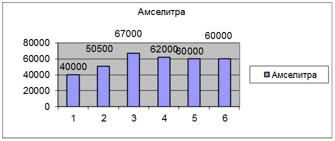Как можно увидеть из диаграммы 2, увеличение объема производства положительно сказалось на себестоимости продукции. Полная загрузка мощностей цеха (включение обеих установок по производству) позволила существенно снизить себестоимость. Чтобы проследить полученный от увеличения масштаба производства эффект, необходимо сравнить калькуляцию производства аммиачной селитры на 40000 тонн в месяц (при одной включенной установке) и на 60000 тонн.