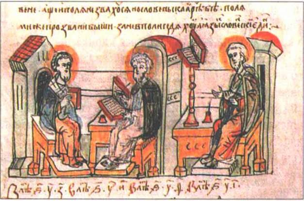 Протягом сторіч у східних слов'ян нагромаджувався багатий досвід архітектури, склалася національна традиція містобудування. Довгий час як головний будівельний матеріал використовувалася деревина, що була в достатку доступна. У центрі поселень знаходилися " гради", які служили для захисту від ворогів, проведення племінних зборів і культових обрядів. Більшість споруд у слов'янських " градах" споруджувалася зі зрубів - колод, укладених в чотирикутні вінці. Зі зрубів будувалися і прості хати, і 2-3-поверхові тереми, зруби закладалися в основу кріпосних валів. Якісно новий рівень розвитку архітектури пов'язаний з переходом від дерев'яного до кам'яного і цегельного будівництва. З прийняттям християнства почалося спорудження храмів, які являють собою самостійну давньоруську переробку візантійських зразків. Перші кам'яні споруди були створені в період князювання Володимира Великого. На центральній площі древнього Києва звели церкву Успення Богородиці. Церква була прозвана Десятинною тому, що Володимир спеціальною грамотою відписав їй десяту частину великокняжих прибутків. Доля церкви склалася трагічно: в 1240 р., коли до Києва увірвалися орди Батия, вона стала останнім рубежем оборони і була вщент зруйнована. У наші дні розчищений і зберігається її підмурівок. Найбільше поширення на Русі отримало хрестово-купольне планування соборів. Така композиція храму базувалася на християнській символіці, підкреслюючи її призначення. Відповідно до цієї системи склепіння з центральним куполом спиралися на чотири стовпи, утворюючи хрестоподібну композицію. Іконопис Визначним здобутком мистецтва Київської Русі є іконопис, що живе й розвивається вже понад тисячу років. Без нього не можливо уявити українське образотворче мистецтво. Ікони були першими станкового живопису в Україні. Проте, ікона - це не просто картина. Це предмет релігійного культу, перед яким віруюча людина молиться. За свідченням літописів, перші ікони потрапляли до Києва з Криму.
