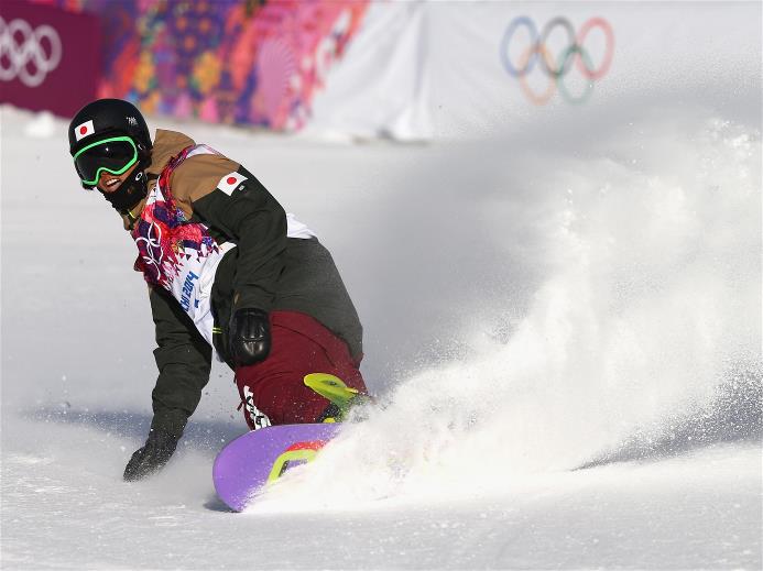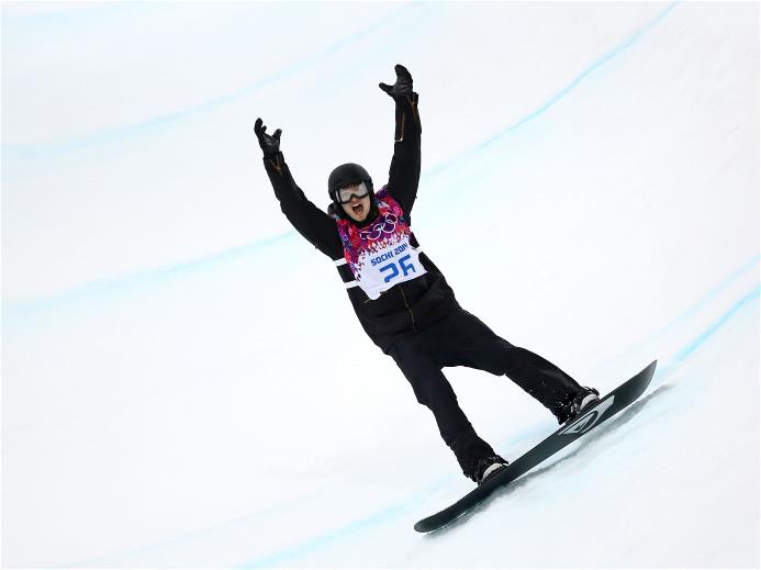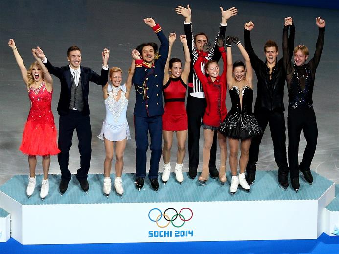 Галерея зимних Олимпийских игр в Сочи. День. Олимпийские факелоносцы зажигают чашу