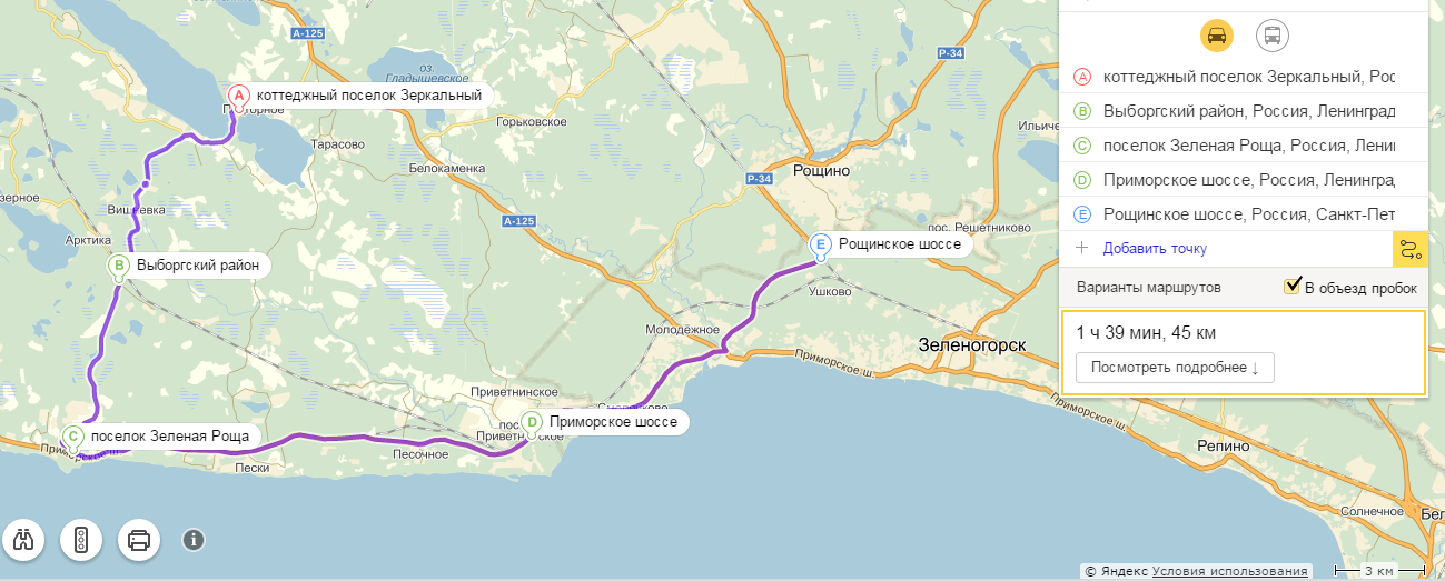 Страховочный вариант: https://maps.yandex.ru/? oll=29.225134%2C60.264728& ll=30.086274%2C60.475687& z=11& rtext=60.547217%2C30.218212~60.392973%2C29.787856~60.392973%2C29.787856~60.406814%2C29.636589~60.351409%2C29.450853~60.354783%2C29.390325